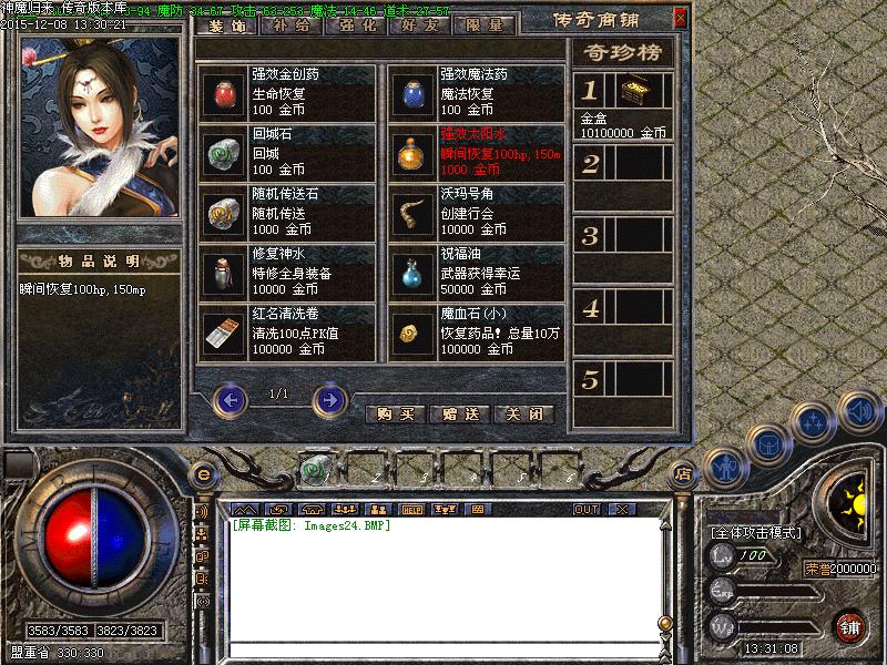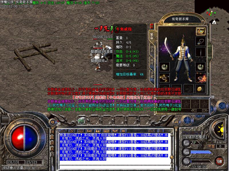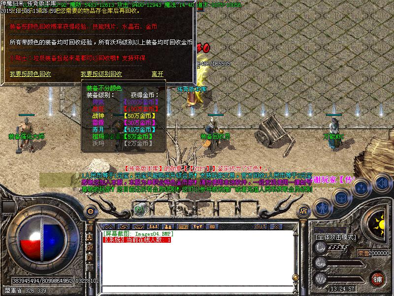 3.装备回收金币:沃玛以上的装备不管什么颜色都可以拿去回收大量金币 或者贩卖给玩家换取需要的金币和装备