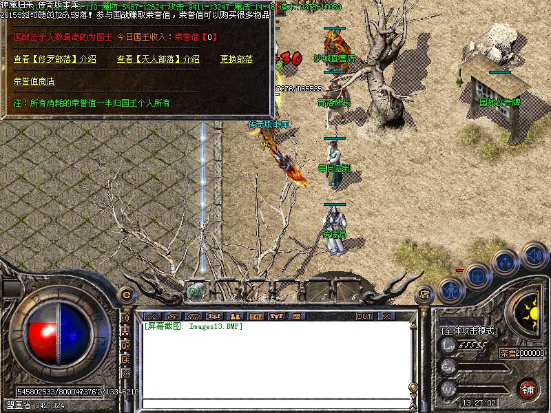 5.特色国战系统,可以击杀敌国敌人获取荣誉值 击杀一个获取5点荣誉值,荣誉值可以在【部落族长】商店换取稀有物品,