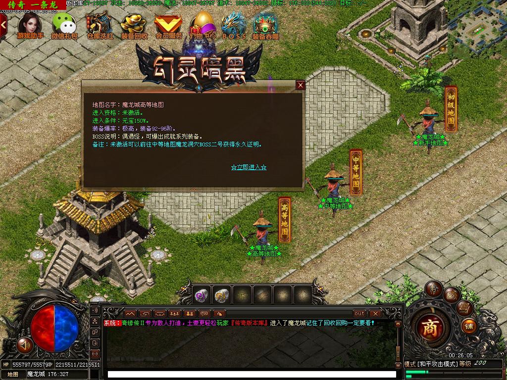 2.比如盟重城第一个初级地图是免费进入的,打元宝非常不错,在初级地图可以打出去下个地图的凭证(中等凭证,当然全服有人打出来 ,你也可以回购商城购买),在中等地图可以打出高等地图凭证。