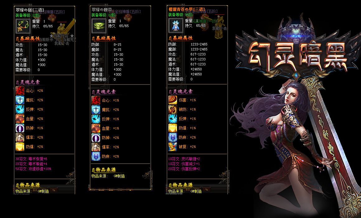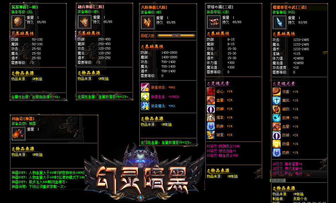 传奇服务端 商业版本 幻灵暗黑单职业版宠物技灵魂元素生活技符文