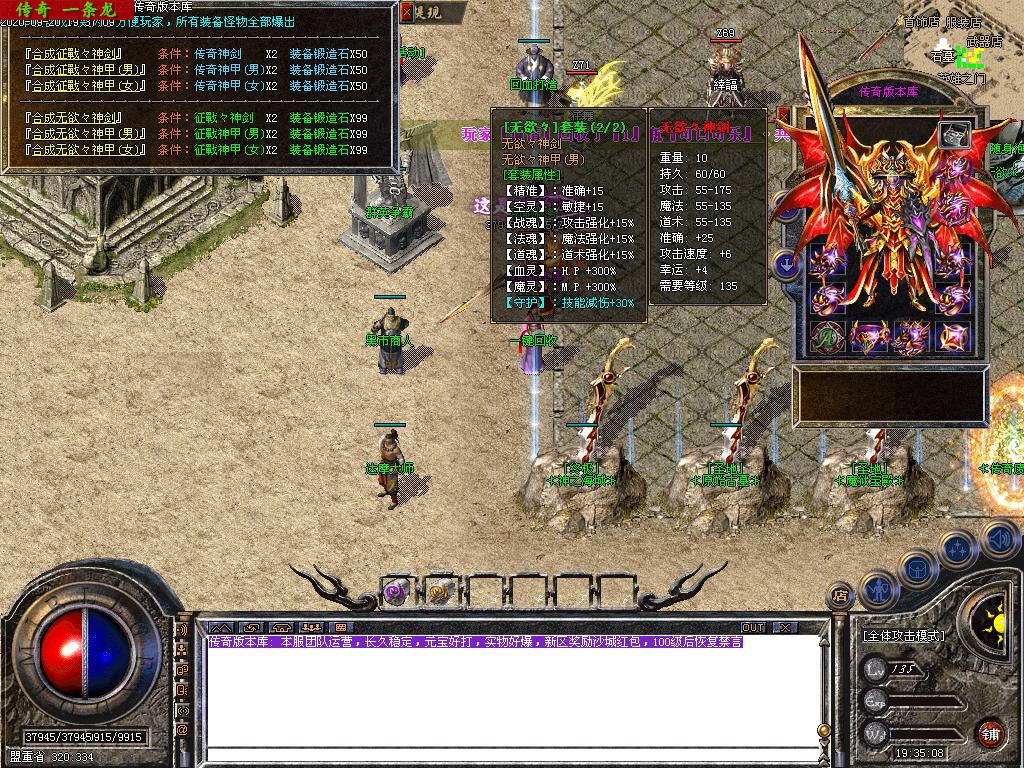 .装备介绍:本服目前装备排序为 [火龙]→[炎龙]→[传奇]→[征戰]→[无欲]