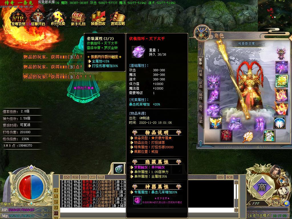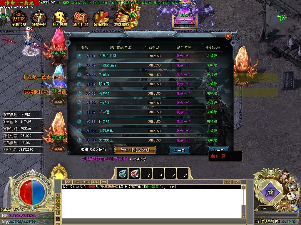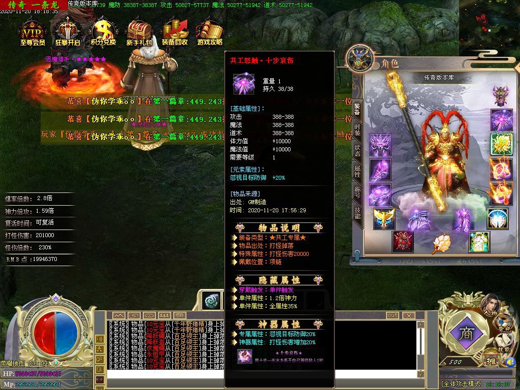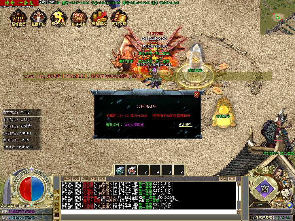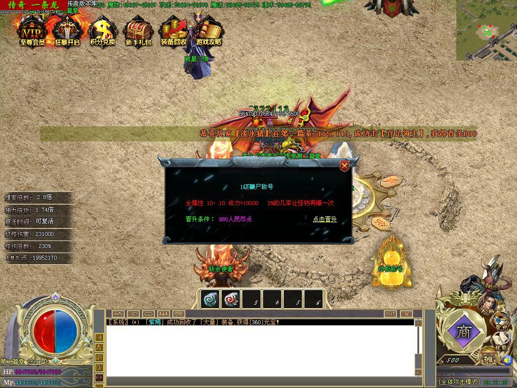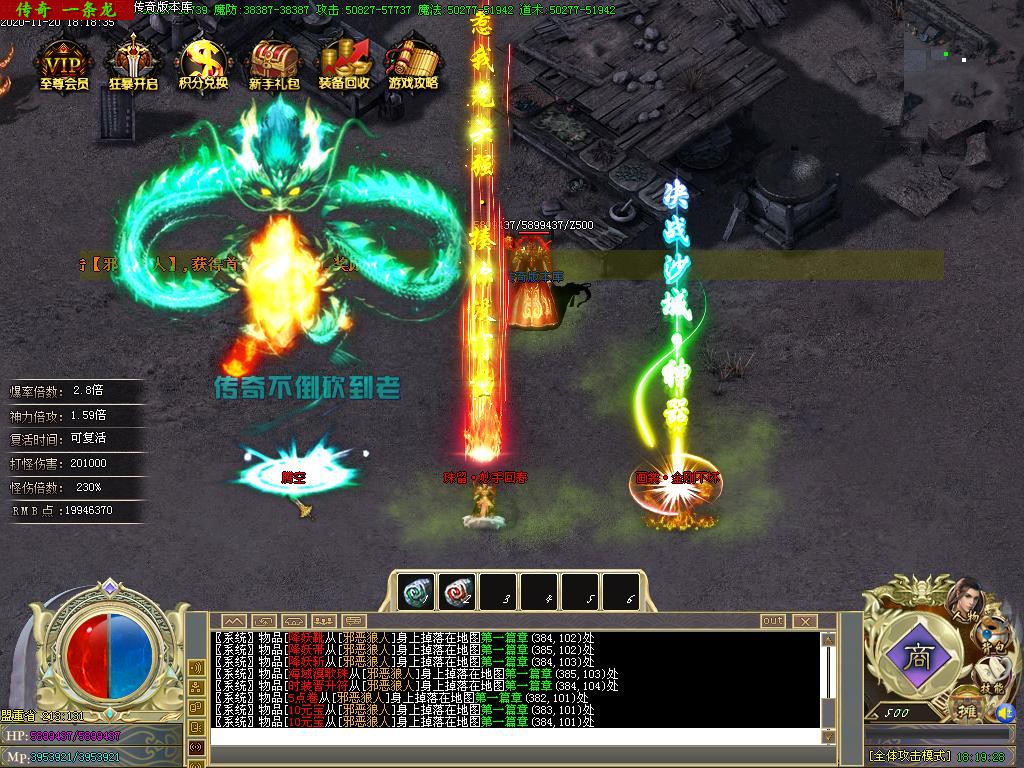传奇服务端 商业版本 西游降魔篇攻速单职业BUFF切割捐献鞭尸假人