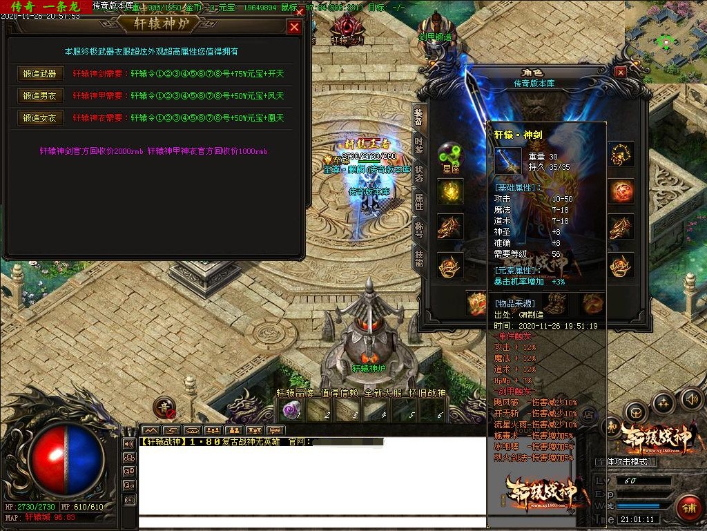 传奇服务端 商业版本 1.80轩辕战神怀旧复古+3版捐献狂暴鉴定宠物