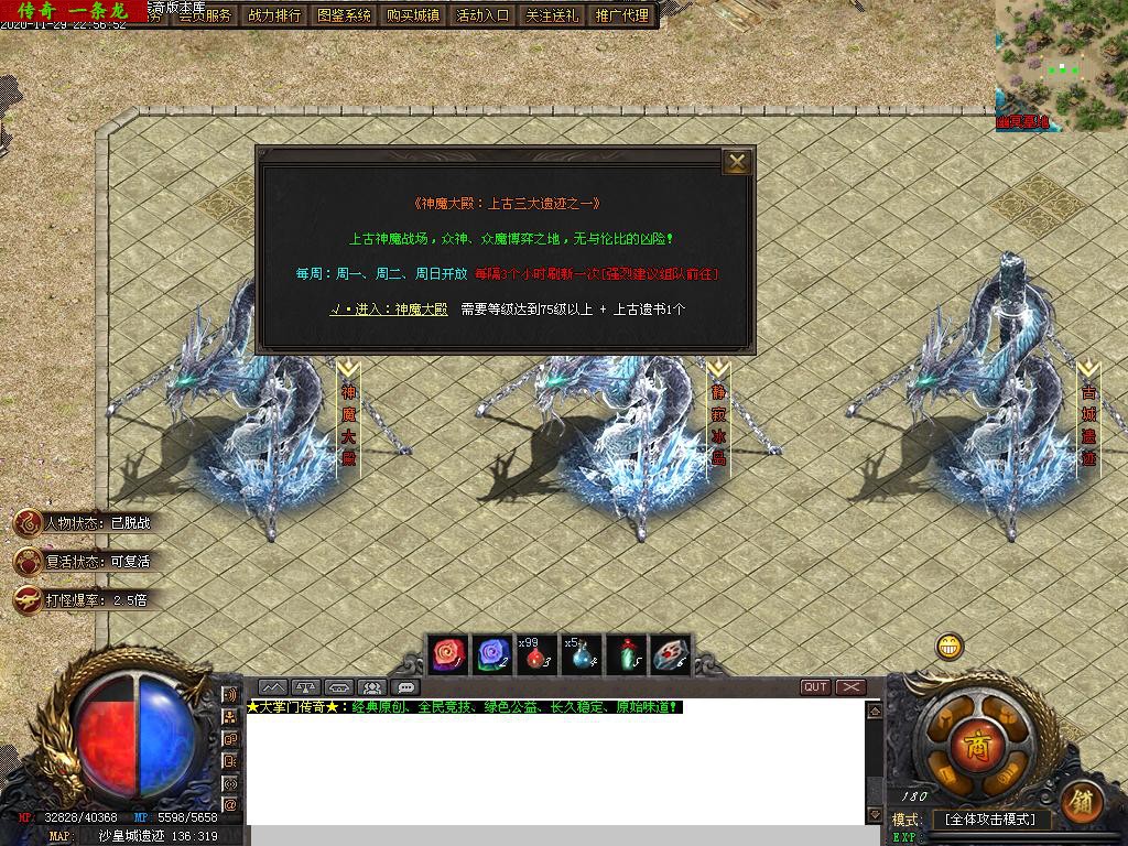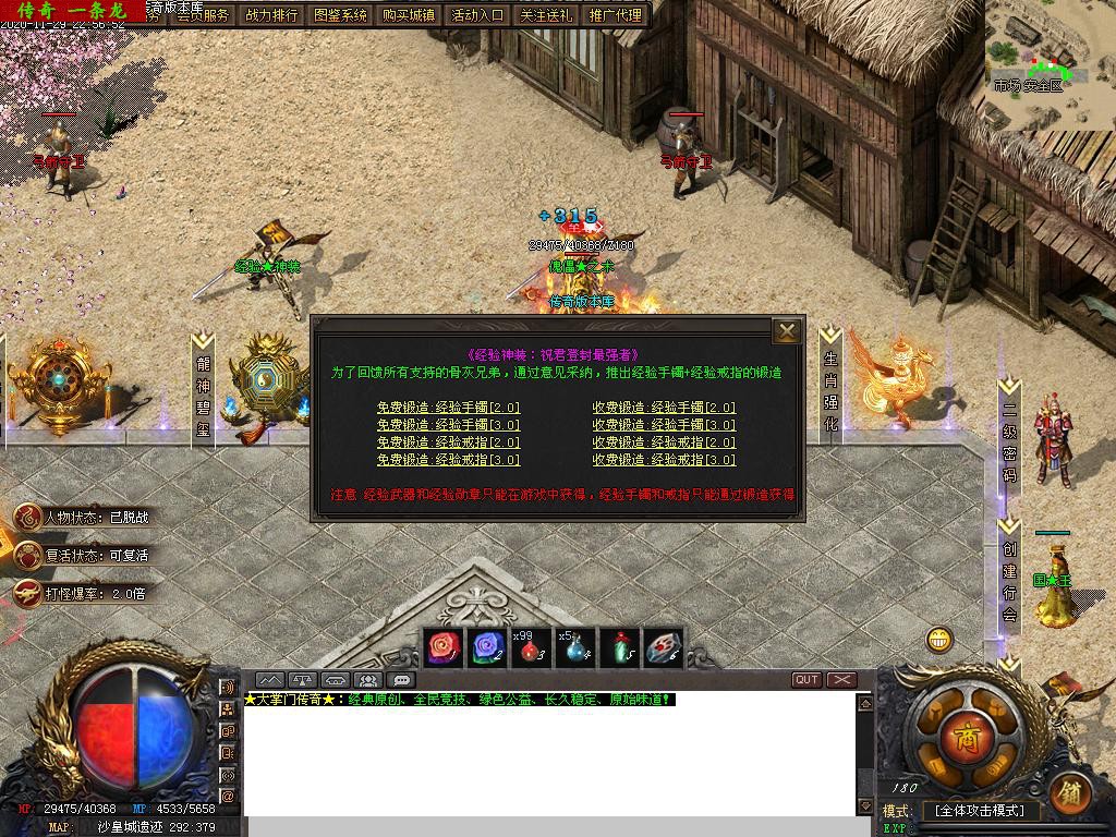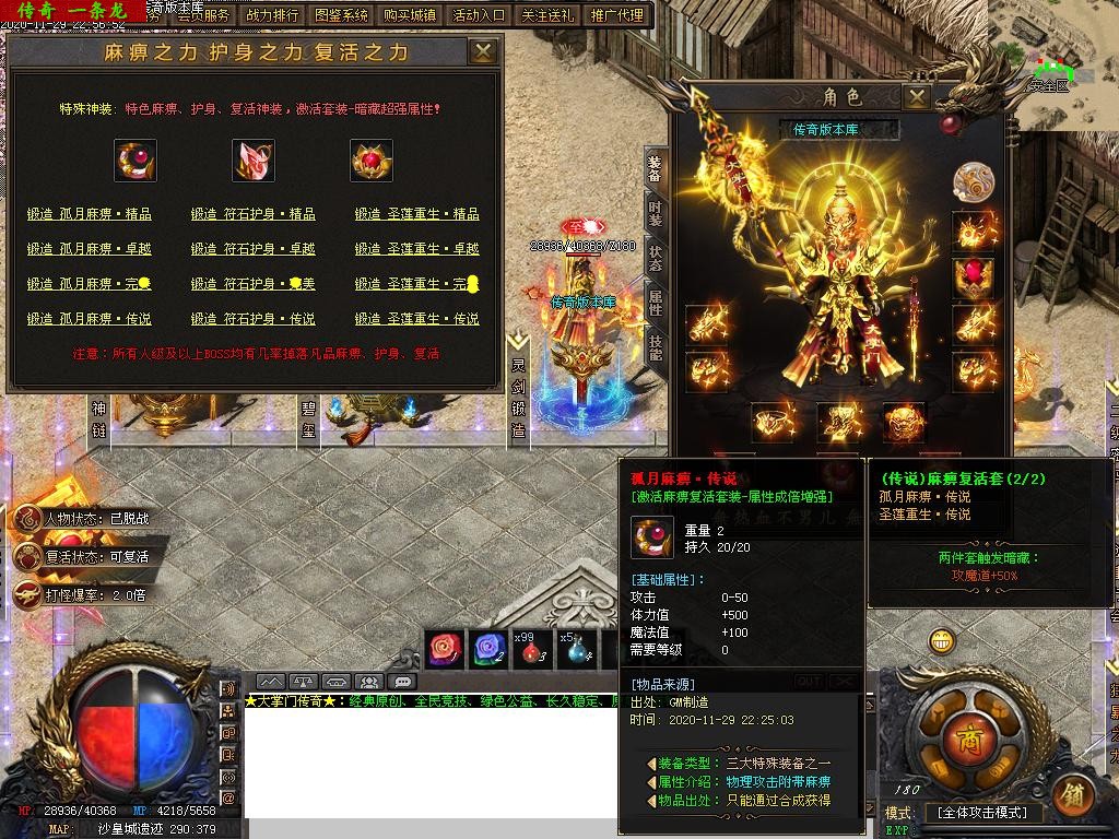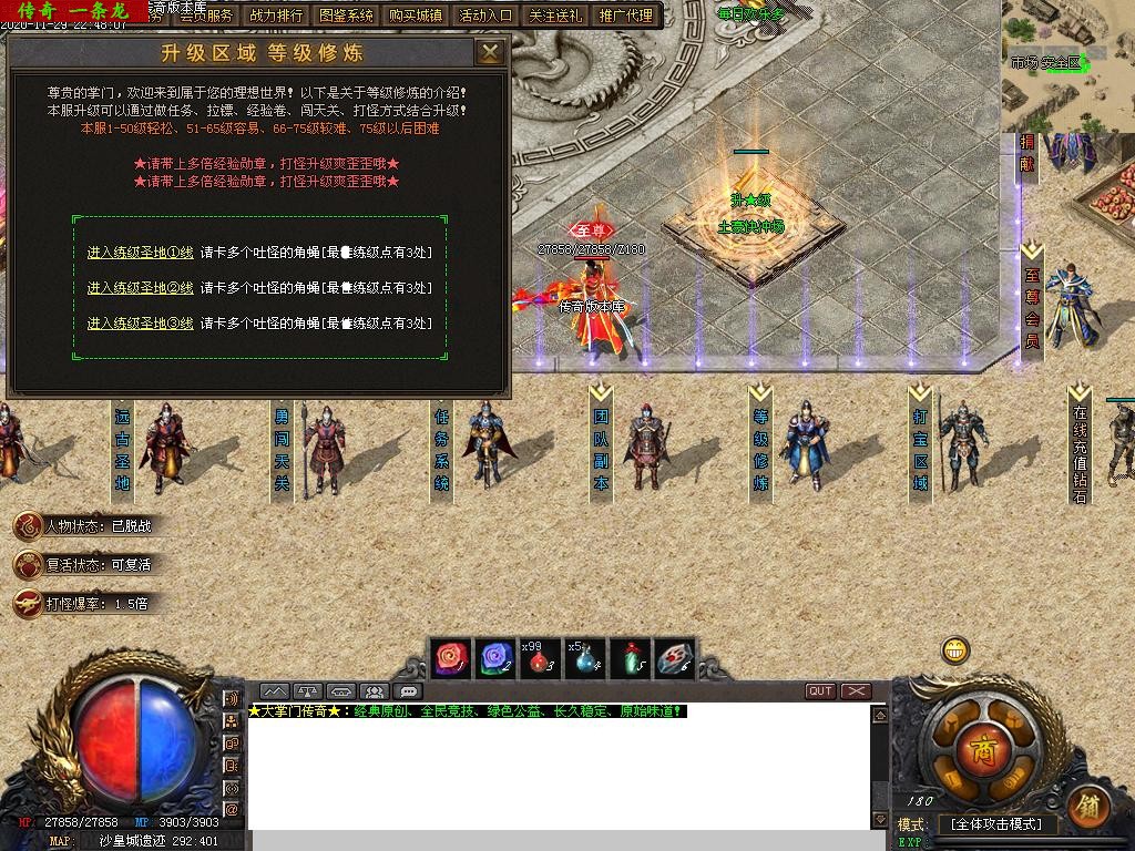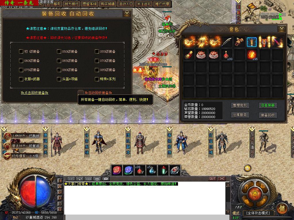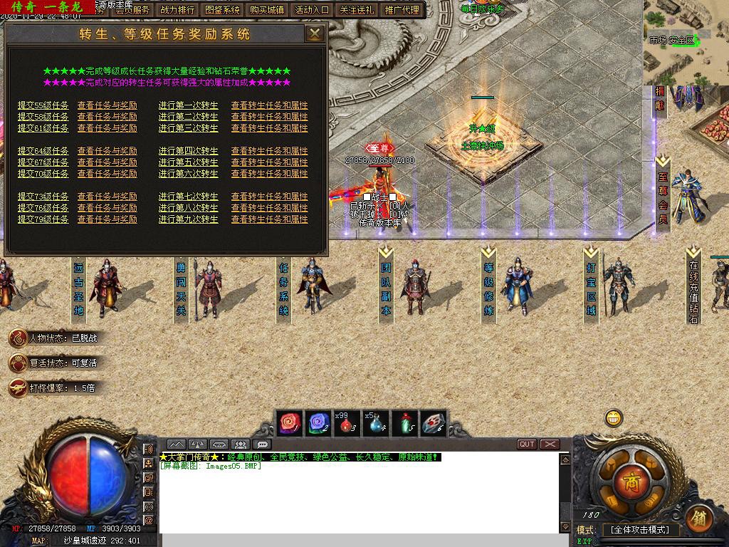 传奇服务端商业版本大掌门沉默三职业任务副本领地七神技自动捡取