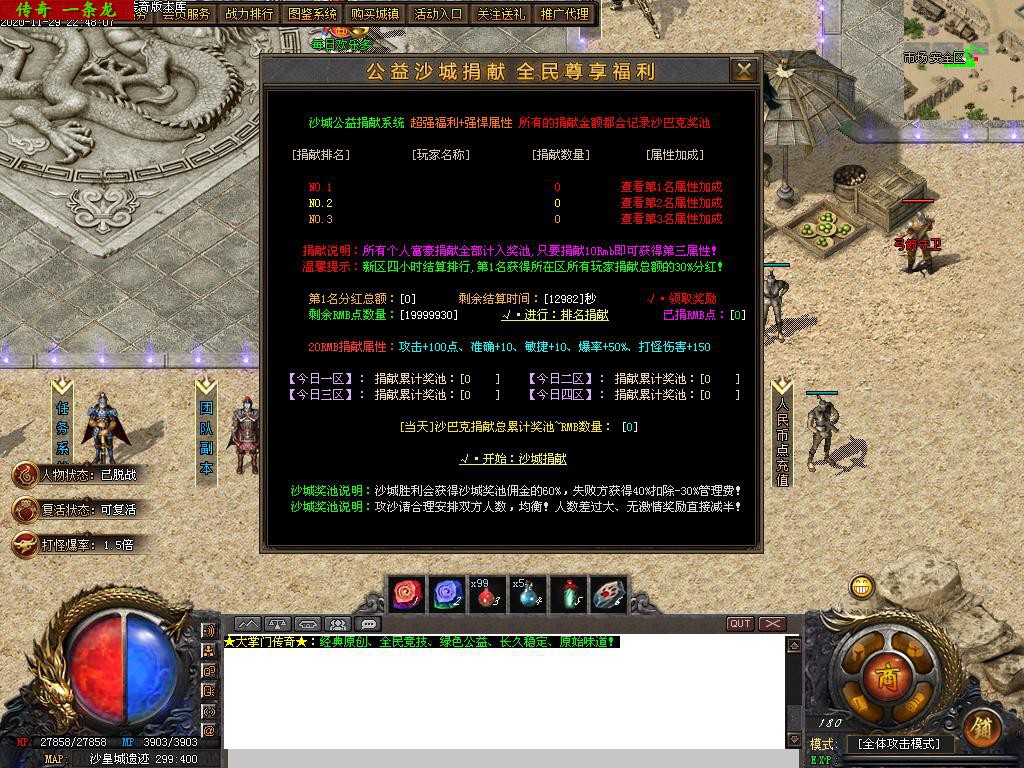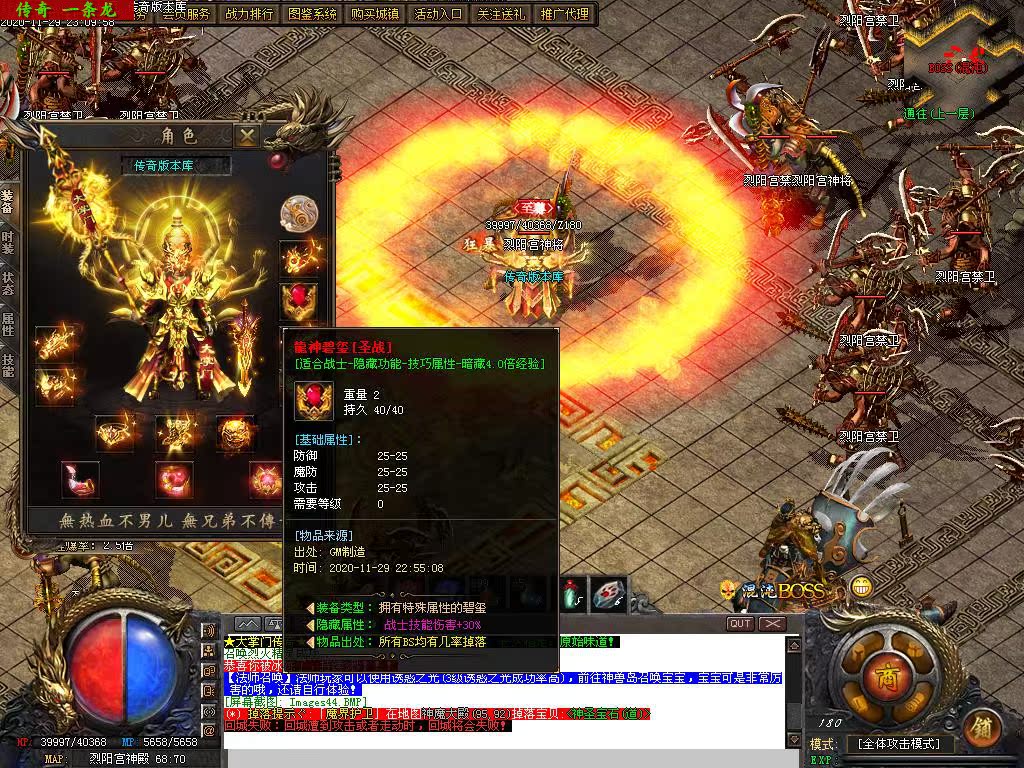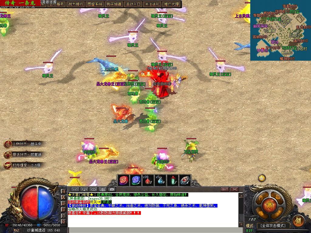 ●本服BOSS分为:打宝(分为12个等阶血量从5000~128万,难度递增,千万不要想越级杀怪,会死的很惨)