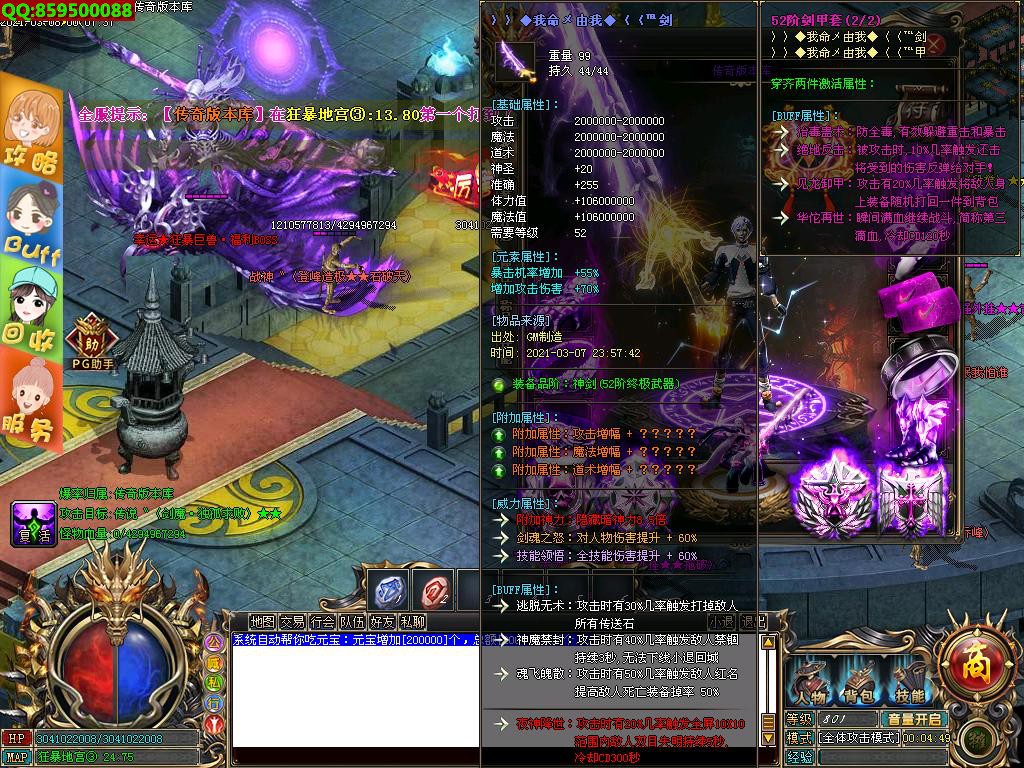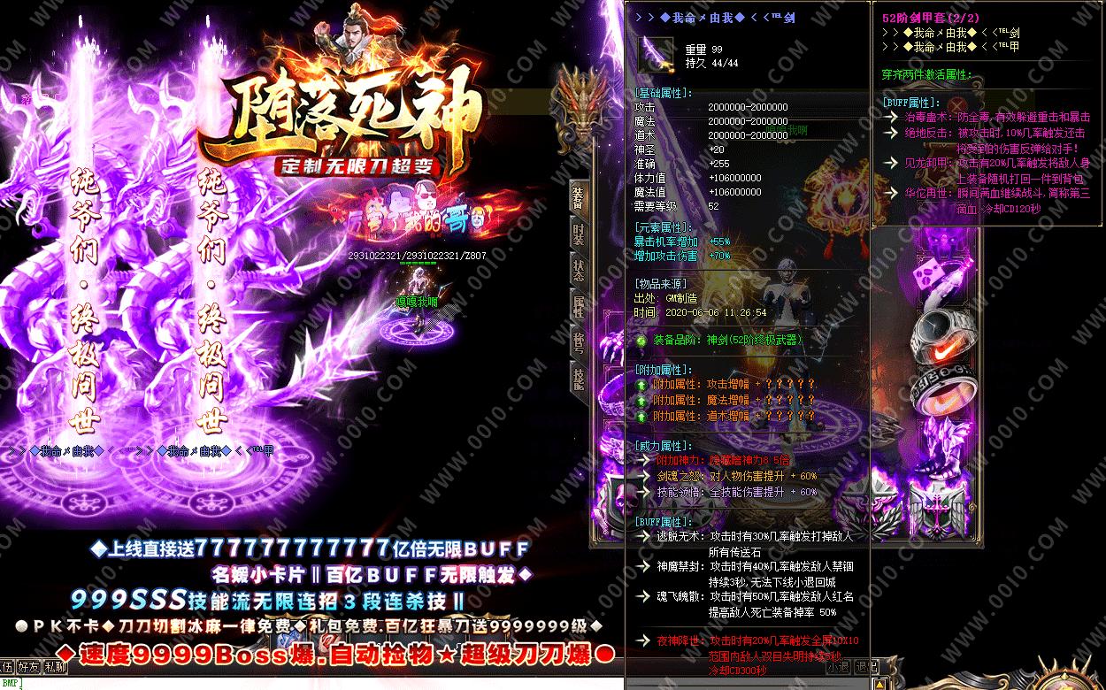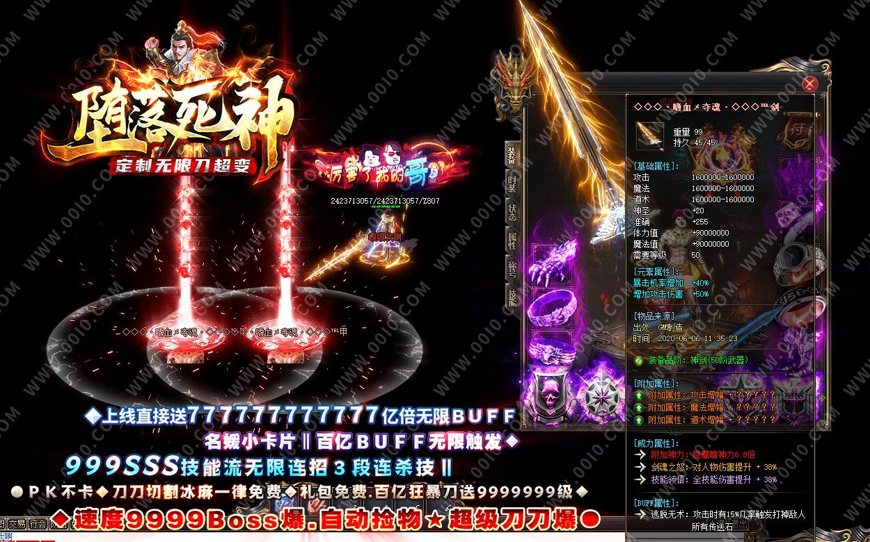 传奇服务端商业版本堕落死神超变单职业切割BUFF神技自动捡取假人