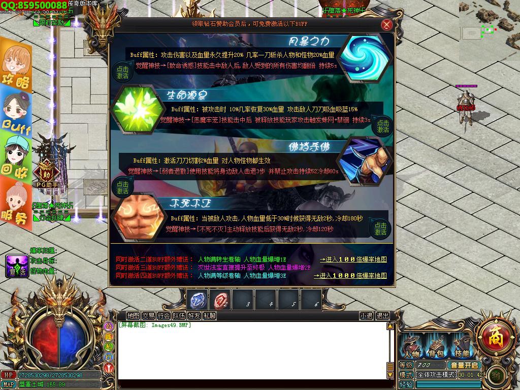 版本地图功能超多 特色给力活动 特色装备 切割怪物 BUFF神技 自动捡取 假人自动上线品牌 人气大服 更多查看截图