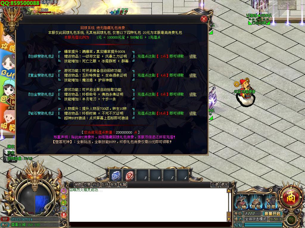 【游戏功能】:全新版本 匠心制作 散人打金 激情天堂!