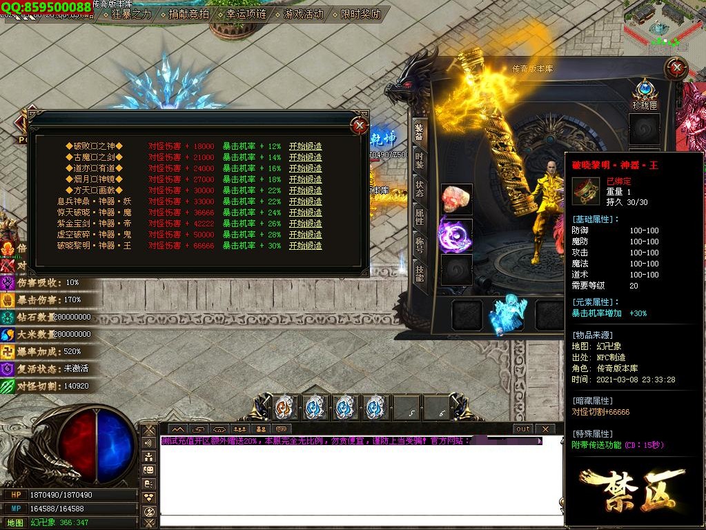 传奇服务端商业版本绝迹沉默禁区单职业剧情专属自动捡取切割光柱