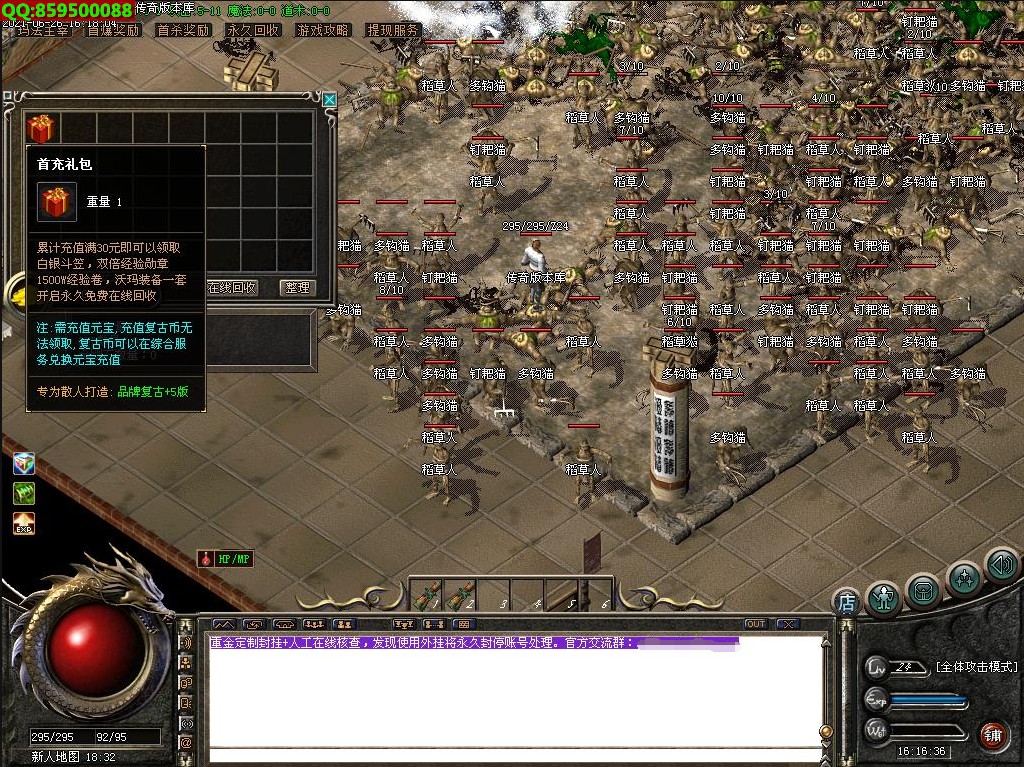传奇服务端 商业版本1.76新复古小极品+5版强化九重BUFF假人光柱