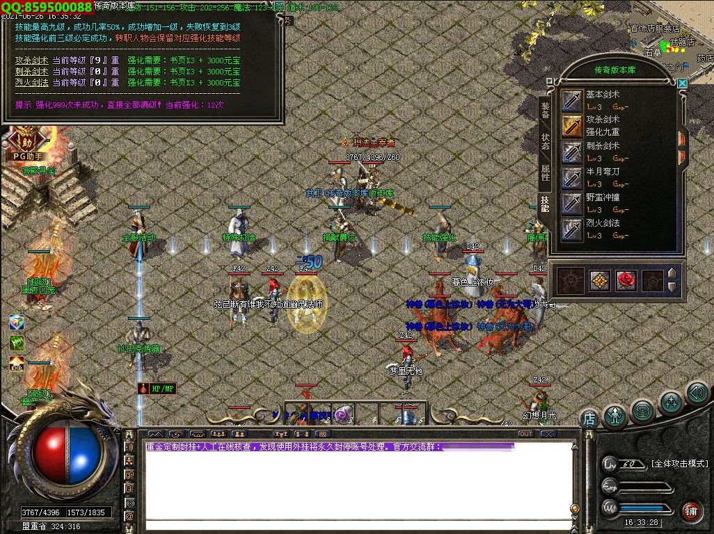 [技能介绍]本服推出技能强化系统,共可以强化到九重。经过精心调整不会太变态导致打破游戏平衡。