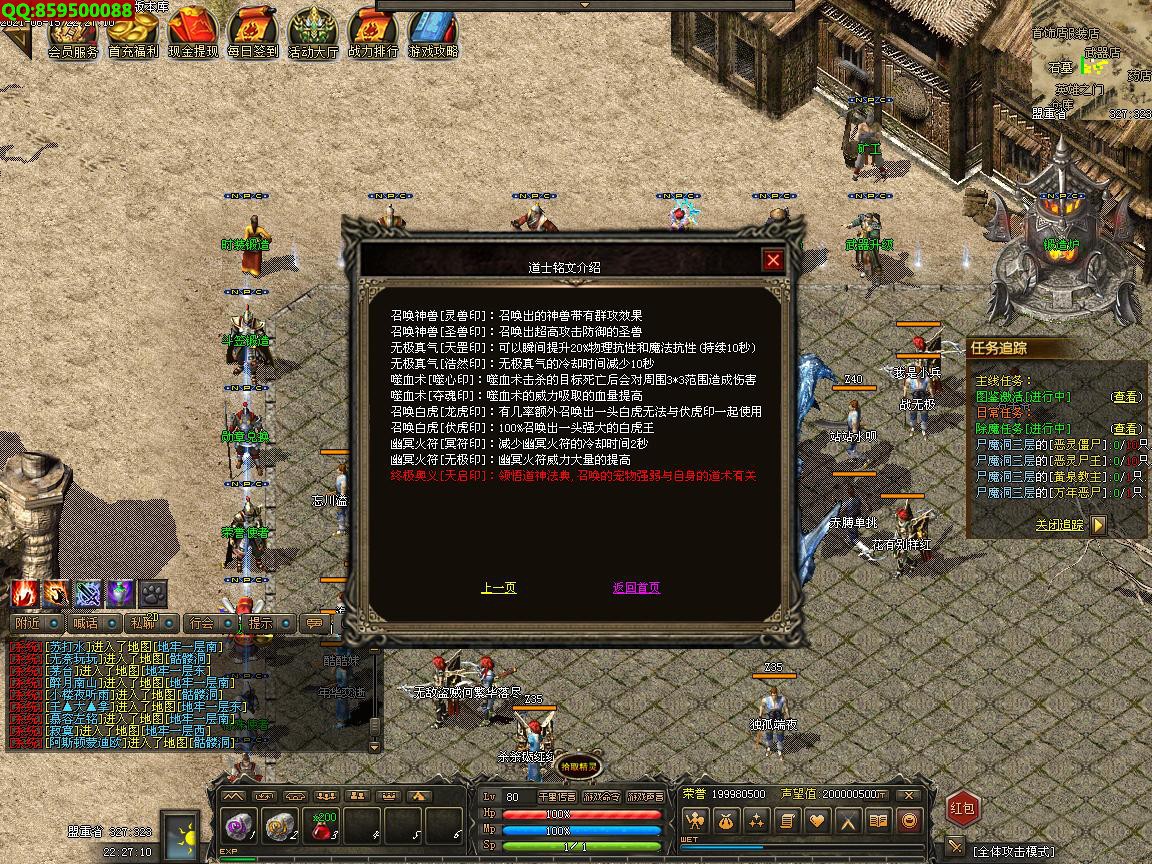 道士:后期道士仍旧强力,通刷所有地图所有boss,宠物继承本体属性,道术越高,宝宝越强,坚持喜欢玩道士的朋友不会感到后期乏力