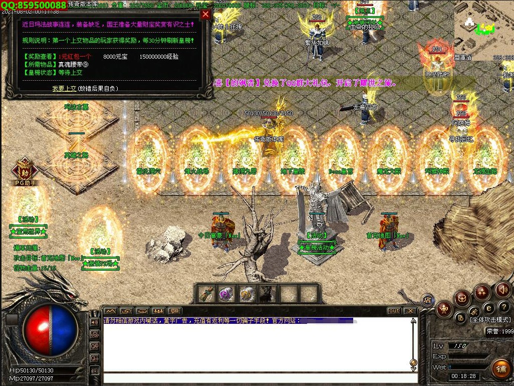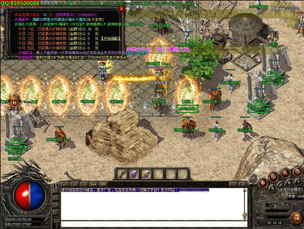 [游戏介绍]开区第二 天集体攻沙,新区沙奖励188W元宝+ 188红包.