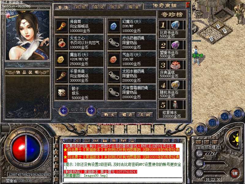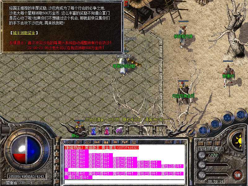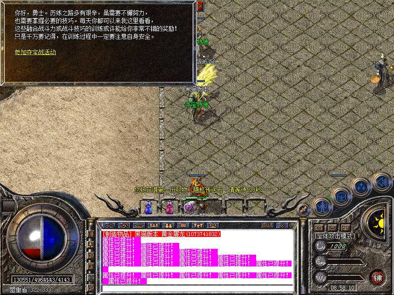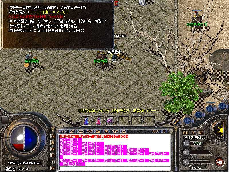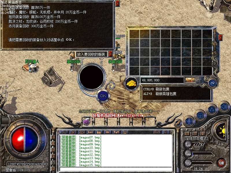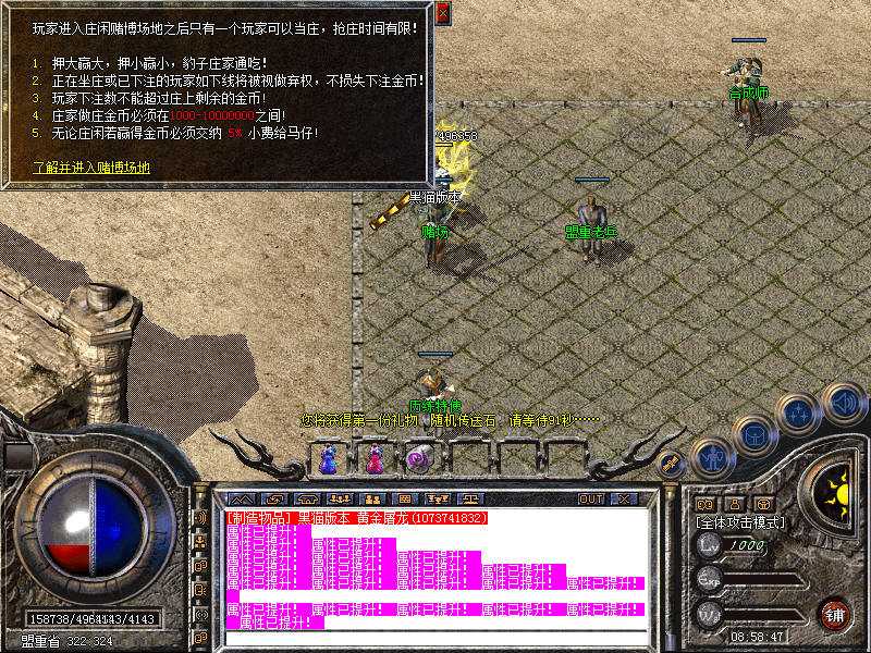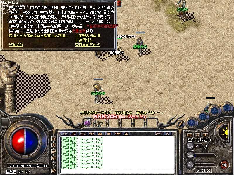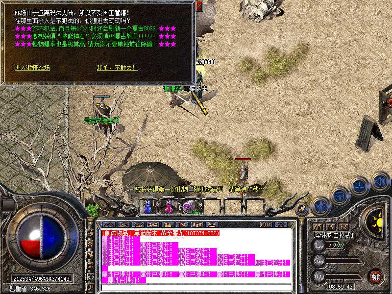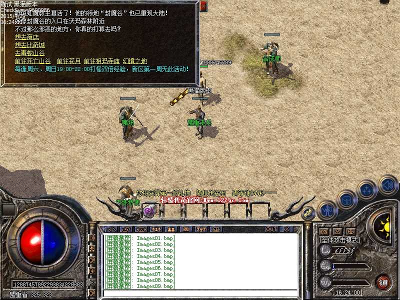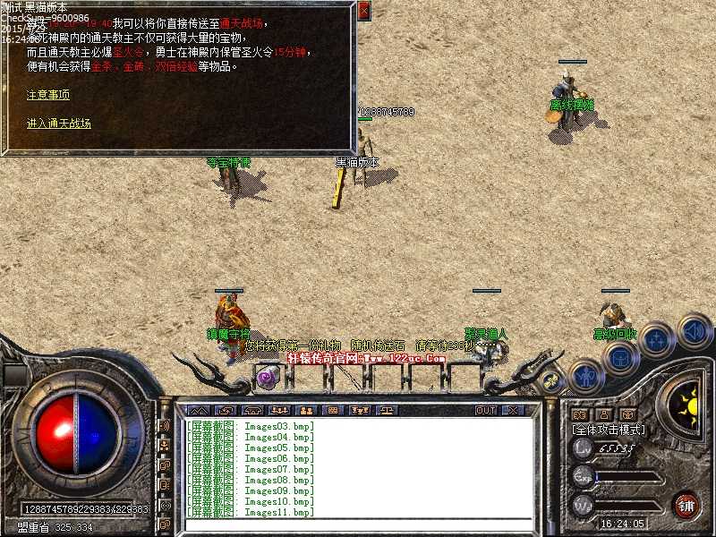 激情-行会战地图:每天晚上19点15分-19点55分《土城NPC 激情神殿》免费进入,里面刷新一只(终极BOSS)必爆金条等物品