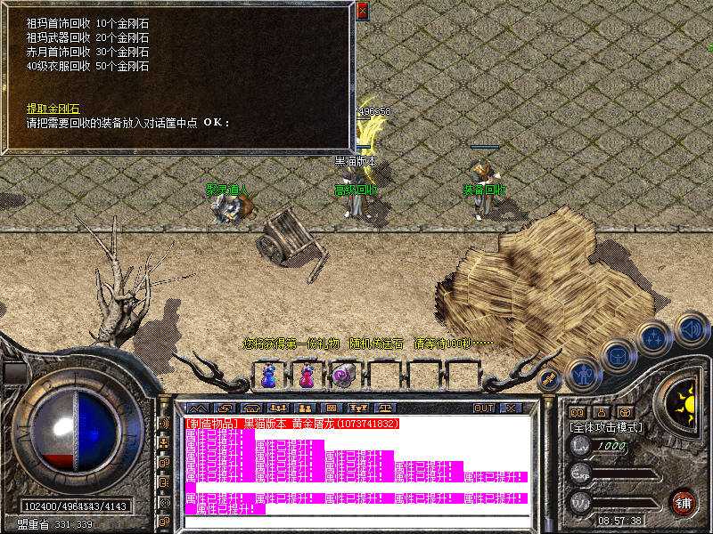 新手玩家可以去比奇挖肉找比奇屠夫直接兑换金币,每块肉兑换3000金币