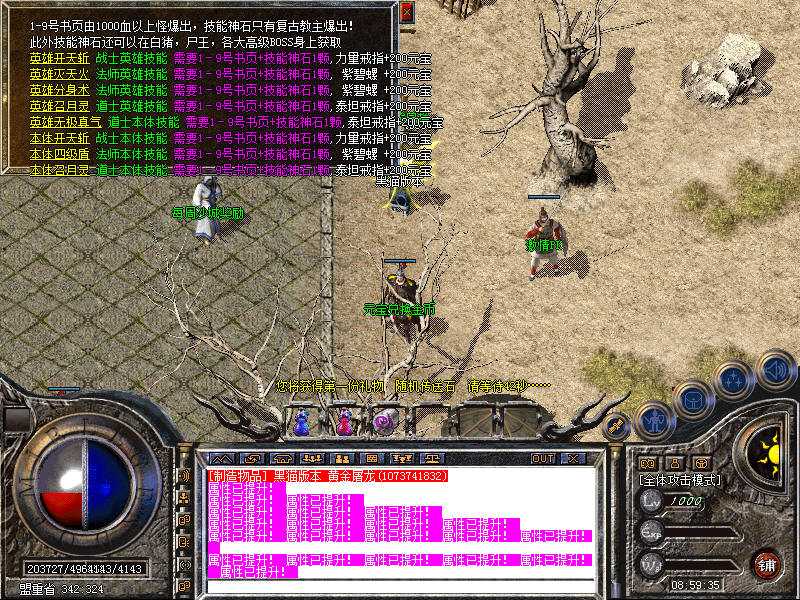 法师介绍:25级召唤巨型多角虫(未知暗殿每20分钟刷新50只,不死不刷)、36级召唤天狼蜘蛛、42级召唤月魔蜘蛛、召唤花吻蜘蛛、45级召唤黑锷蜘蛛、46级召唤900半兽勇士.冰咆哮8X8范围.白日门每小时刷3只虎卫和鹰卫.